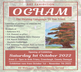 Pupils of 6 schools in Donegal, will exhibit their paintings of “The Healing Language of the Trees” in Ards Friary, Creeslough.